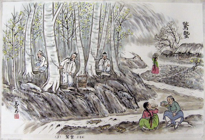 They drunk sap from the trunks of maple trees, as this was believed to have healing benefits for stomach and gastric disorders. Also it tasted good. Maple sap had to be collected on a clear day because, according to popular belief, cloudy or windy weather would spoil the positive energy on this day. After Gyeongchip, the amount of sap available in the maple trees falls sharply and the sap was thought to lose its healing qualities.